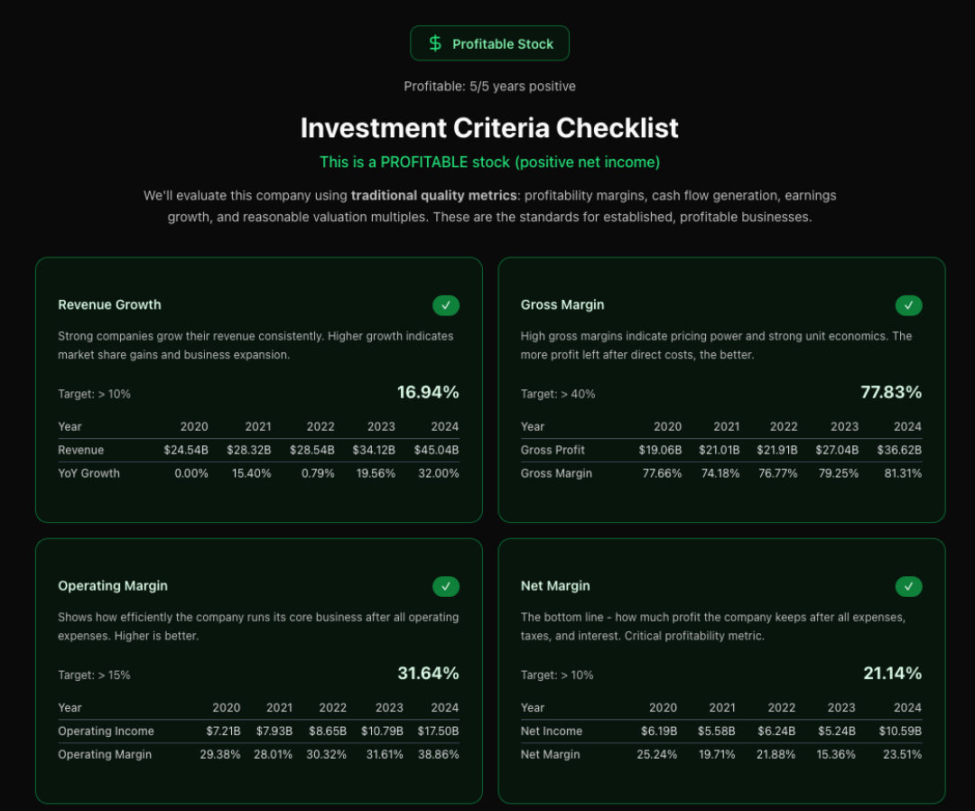 - ✓AI-powered analysis that synthesizes years of fundamental data